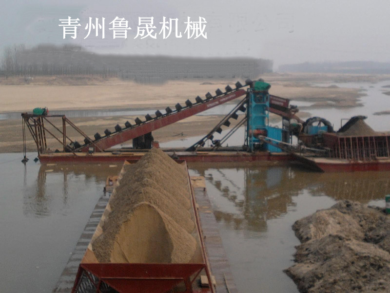 挖沙船,即采掘沙石、沙礦的船舶,一般為電動遷移式或柴油機械動力式。船體采用拼裝式箱型結構。配有挖掘裝置、篩選裝置、提升裝置、傳送裝置等。通過電機驅動挖斗上料,石塊通過篩選傳由輸送帶傳出,沙子由輸送帶或沙泵傳到地點。