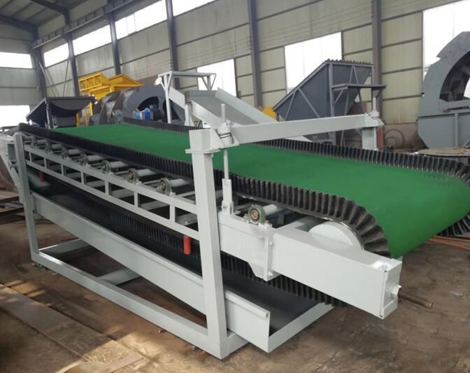 全自動懸振沙金溜槽的設計目的主要是捕捉和回收細顆粒黃金,該黃金回收設備原理是反重力選礦原理,選礦狀態是循 環轉動連續回收重金屬,重金屬往上走反重力法礦,可以用來回收沙金礦,巖金礦,沙錫礦等,也可把搖床,混汞機,普通溜槽處理過的尾礦里面的、重砂里的面金、細金、漂浮金回收起來。皮帶選礦機