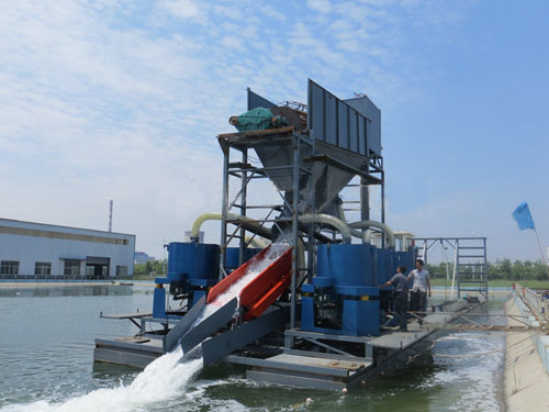 水套離心機淘金船的工作流程:船上的設備由八個系統組成。