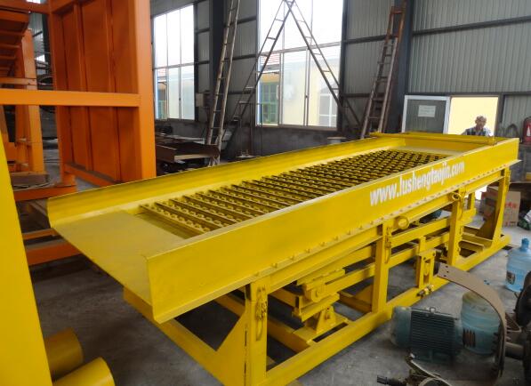 鼓動溜槽的特點:基本上保留了溜槽原有的特點,而將原有的鐵制底板改為橡膠底板,再加上簡單的偏心鼓動機構,使橡膠底板做上、下往復運動,每個溜格之間類似于跳汰機的隔膜作用。從而解決了溜格的板結現(xiàn)象,提高了金的回收率。由于鼓動溜槽是間斷排出精礦,所以富集比要比跳汰機高幾十倍到幾百倍。