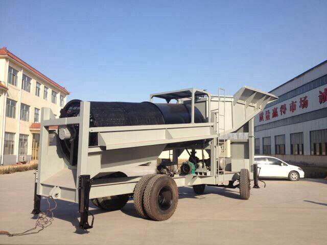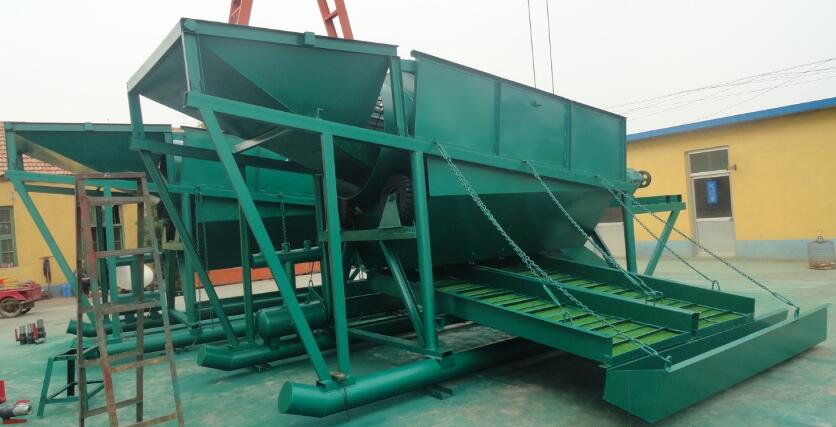 可用挖掘機、鏟車、汽車隨時拖動。該機綜合了固定溜槽和跳汰機的選別原理及特點,克服固定溜槽的板結現象并采用雙道回收將細金跟粗金、片金,增高了金的選礦回收率,選礦周期為10個小時,工作100-500t/h。