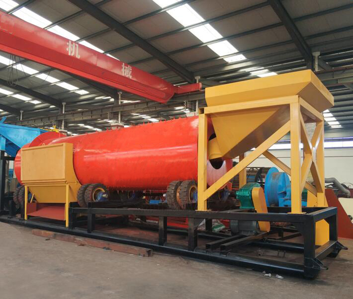砂金洗礦機利用旋轉的圓筒和內部的刮板以及物料中自有的卵石和巖石來分解粘土,塊狀物和軟氧化物。洗礦機的圓筒慢慢地旋轉,類似于一個洗衣機。粗細不同的物料還有水同時在一起翻滾攪動,把有用礦物從泥性土壤,粘土中釋放出來。