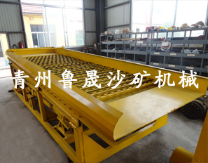它的工作原理是上下鼓動,底部有硅膠板。硅膠板上部有隔水槽用于分流進(jìn)水和富集黃金。鼓動溜槽通過上下鼓動將輕重礦物分離,輕的沙子通過上下鼓動的水流帶走排出為尾礦,精礦比重高會留在被隔水槽留住,留在隔水槽的底部。這種溜槽因?yàn)榘l(fā)明的時間早,知道此設(shè)備的人多,所以用的比較多。但是這個設(shè)備的弊端也非常的明顯,因?yàn)樗荒芑厥沾箢w粒的黃金,細(xì)顆粒的毛細(xì)金、片金、微粒金都會隨水跑掉的。